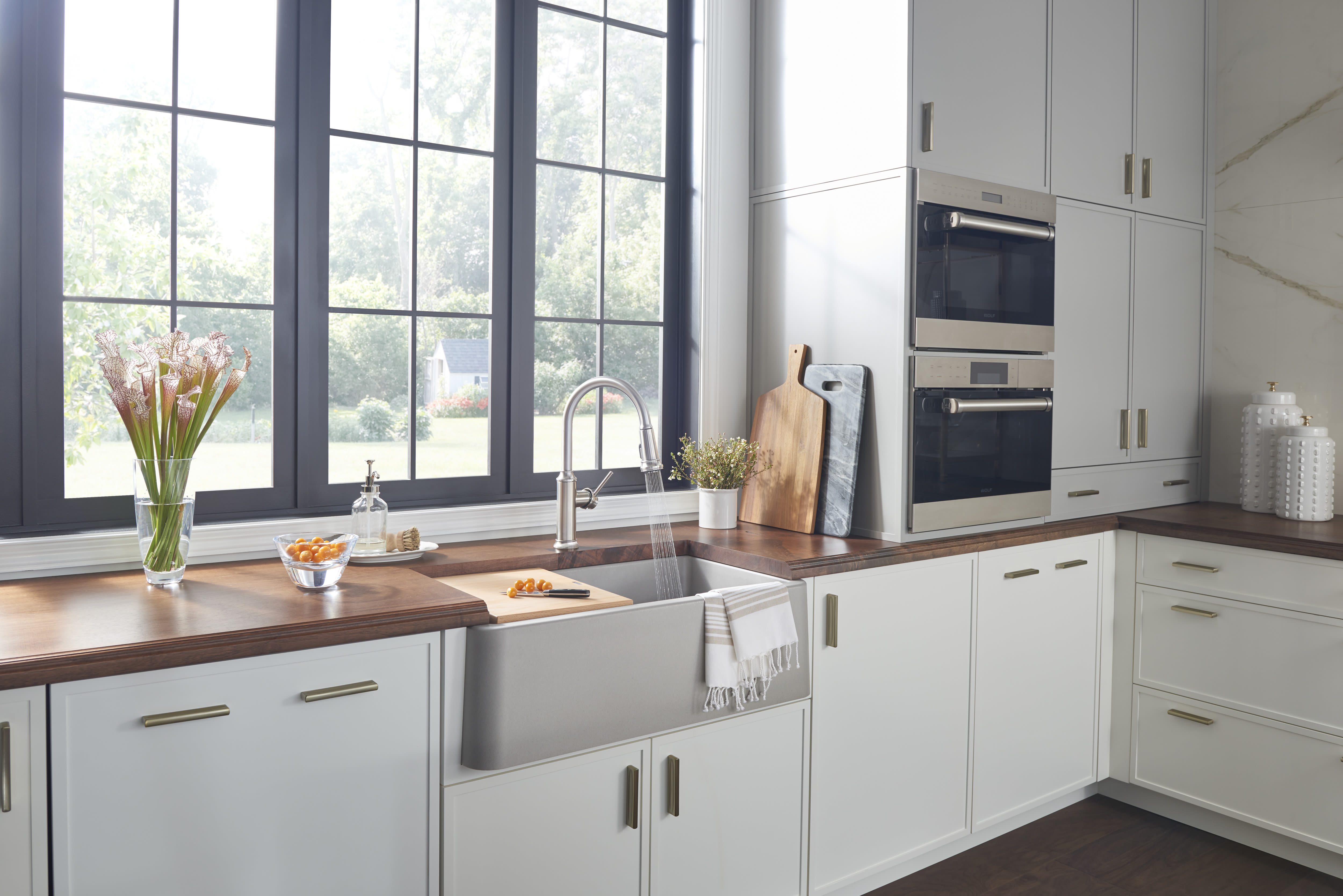 This biscuit farmhouse kitchen sink by blanco® combines the popular apron front style with the beauty, strength and durability of our silgranit™ with its slightly angled apron design, the ikon sink adds a bold, architectural element to your kitchen.